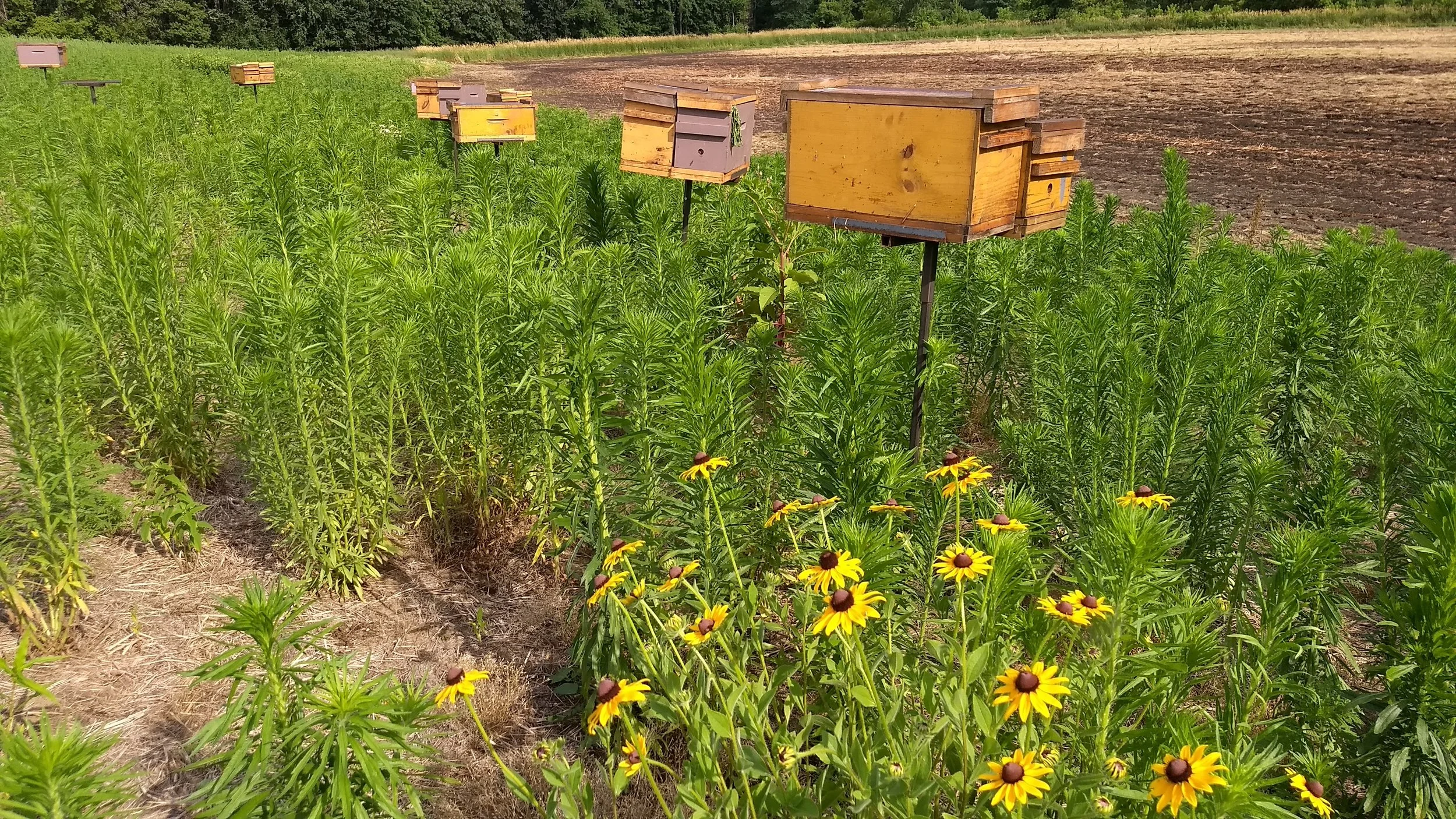 Rudbeckia with the honey bee mating nucs - hopefully it helps the queens find their way back!