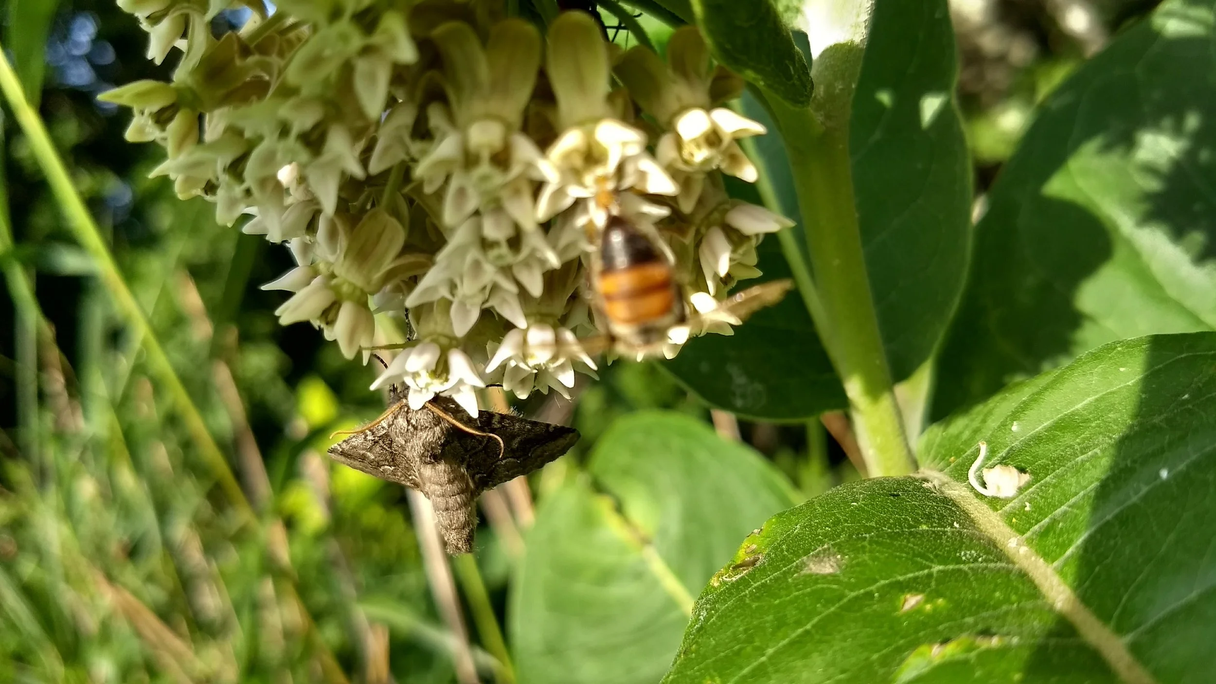 A moth and a honey bee fell victim to the sticky pollinia - trapped by the plant's pollen packets, they died in the blossom.